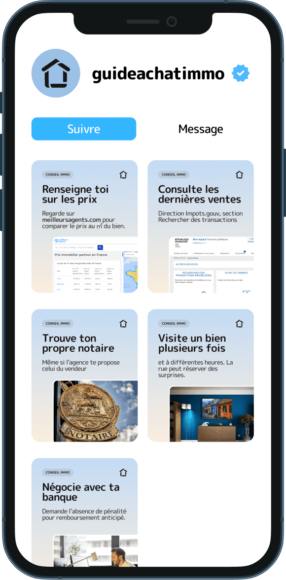 Suivez nous sur Instagram et découvrez chaque jour tous nos conseils en immobilier.